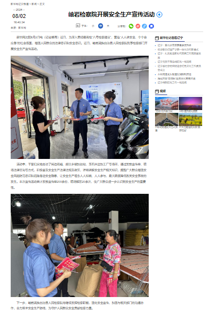 下一步,岫岩满族自治县人民检察院将继续发挥检察职能,强化安全宣传,加强与相关部门的沟通协作,合力筑牢安全生产防线,为守护人民群众安全贡献检察力量。