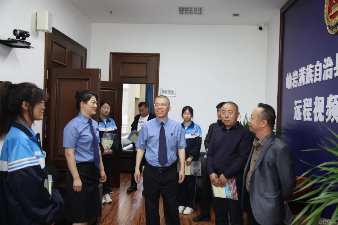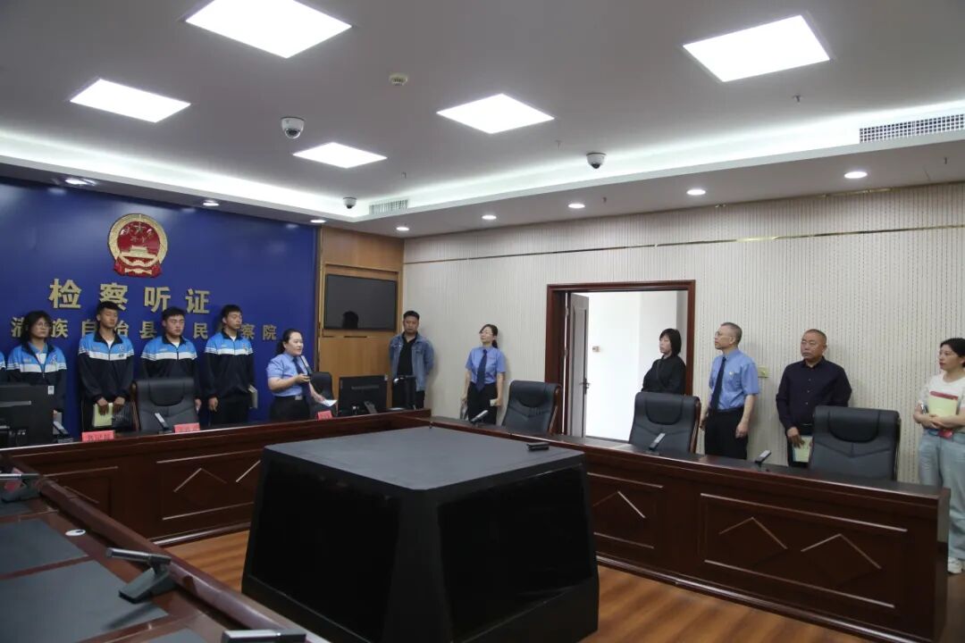 为了能让同学们更直观的了解检察工作,我院还邀请同学们和与会代表参观了多媒体听证室,由第一检察部主任张晓宇同志为同学们和与会代表讲解检察听证工作,沉浸式体验电影“第二十条”中检察官韩明在电影最后召开检察听证的场景。