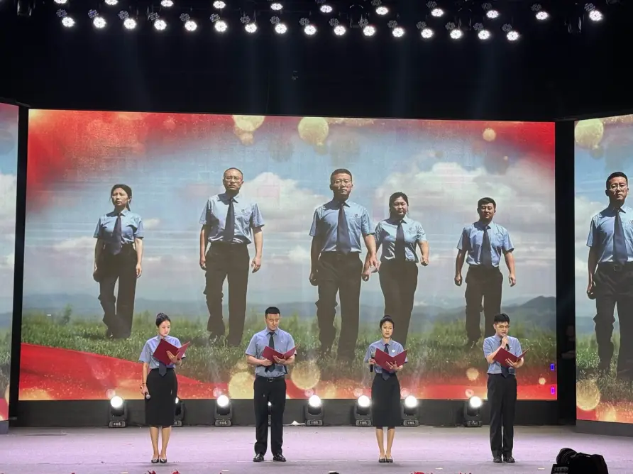 为庆祝中国共产党成立103周年,6月28日,振兴新突破 政法当先锋——全县政法系统“迎七一”榜样力量文艺汇演在岫岩融媒体中心演播大厅隆重举行。