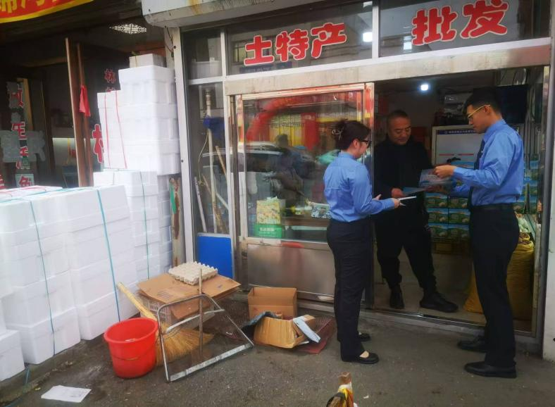 10月16日上午,检察干警在县农贸市场、佳泰乐超市向群众发放宣传资料、提供法律咨询。