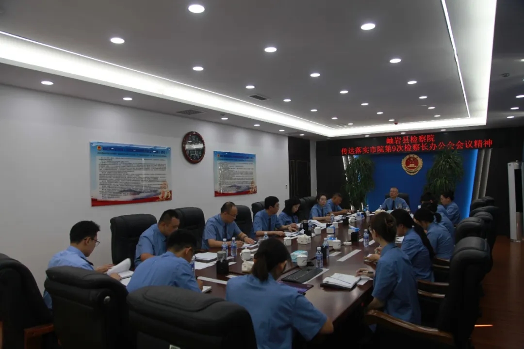 9月18日,岫岩县检察院召开检察长办公会,传达学习市院第9次检察长办公会会议精神,研究部署贯彻落实工作。院党组书记、检察长黄大新主持会议并讲话,班子成员、检委会专职委员、各内设机构负责人参加会议。