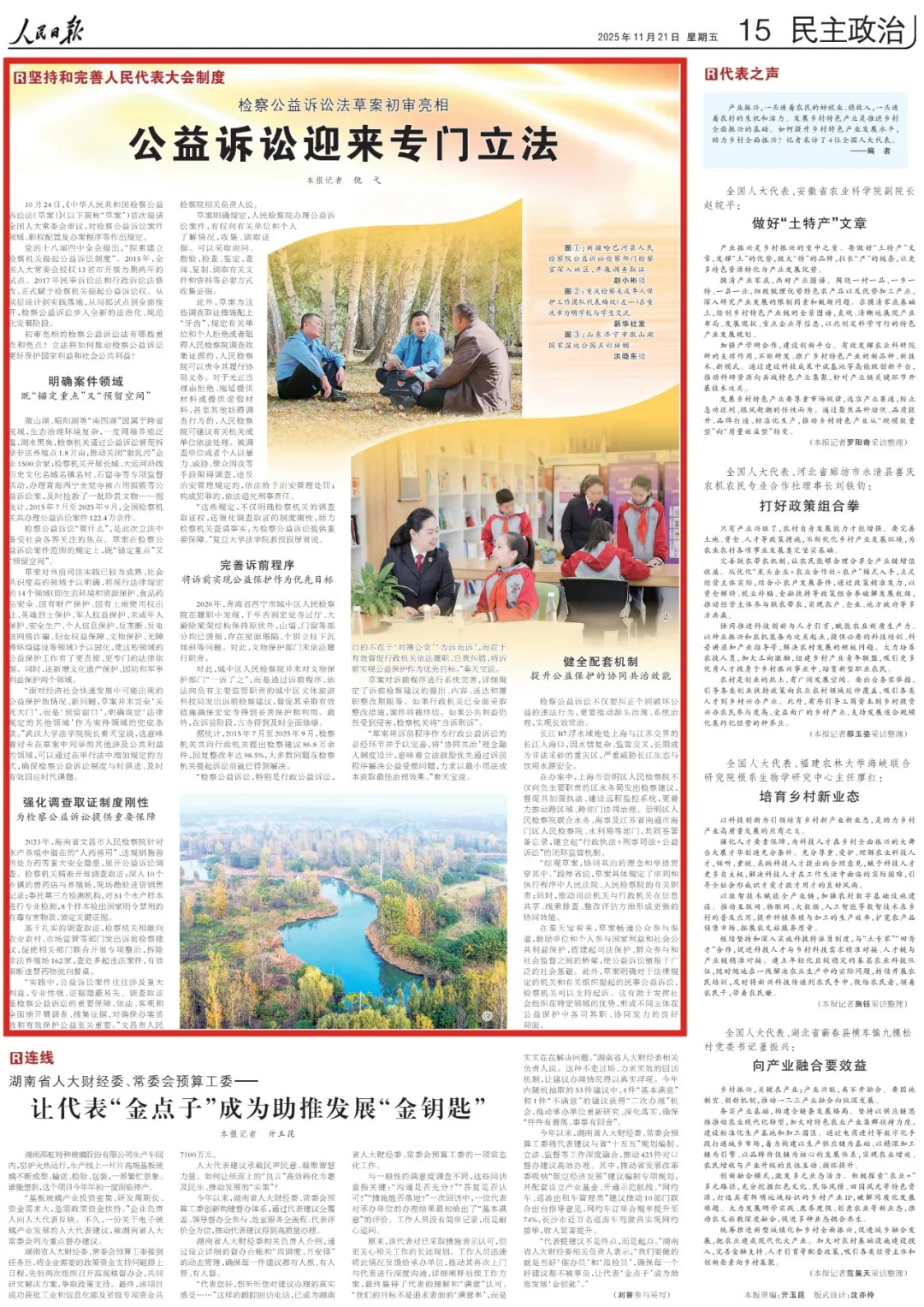 “综观草案,协同共治的理念和举措贯穿其中。”段厚省说,草案具体规定了审判和执行程序中人民法院、人民检察院的有关职责;同时,推动司法机关与行政机关在信息共享、线索排查、整改评估方面形成更强的协同效能。